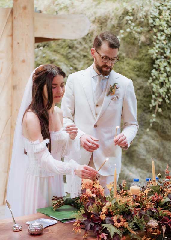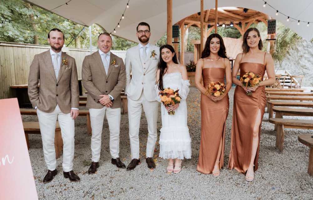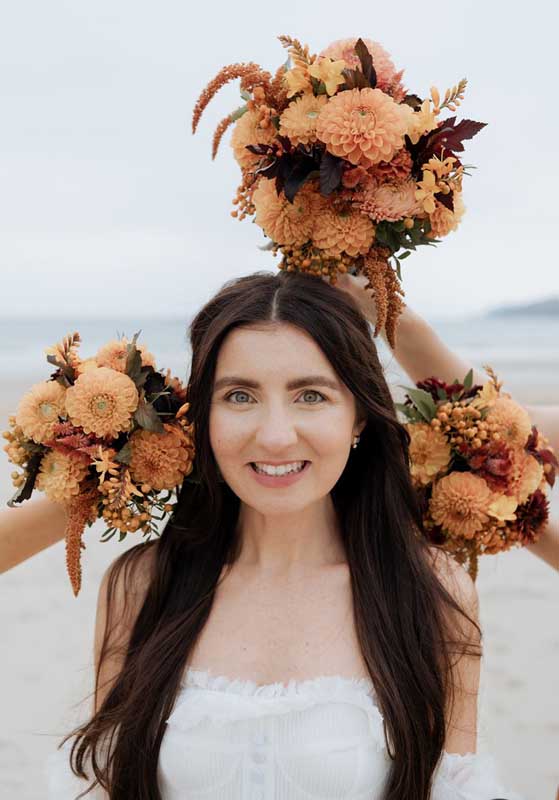 At Connolly’s of Leap, Shannon and Alan’s wedding was enhanced with vibrant, artful florals full of character and colour. Nicola created a striking bridal bouquet alongside coordinated bridesmaids’ flowers, each designed with a modern romantic feel. The ceremony and church arrangements added softness and elegance, while the reception florals brought energy and warmth, perfectly complementing the unique charm of the venue.