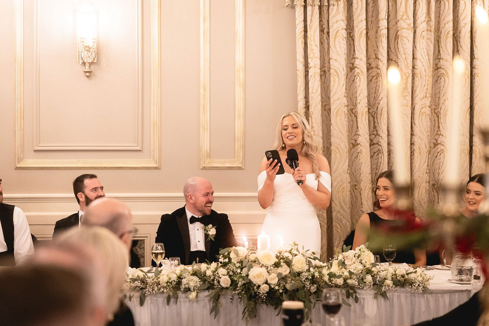 For Ciara and Colm’s wedding in Fernhill House Hotel, Nicola created a collection of soft, romantic florals that brought warmth and personality to their day. The bride’s bouquet featured layered textures and seasonal blooms, complemented by beautifully coordinated bridesmaids’ arrangements. Ceremony flowers enhanced the church setting with natural elegance, while the reception florals added depth and colour, transforming the venue into a welcoming and memorable space.