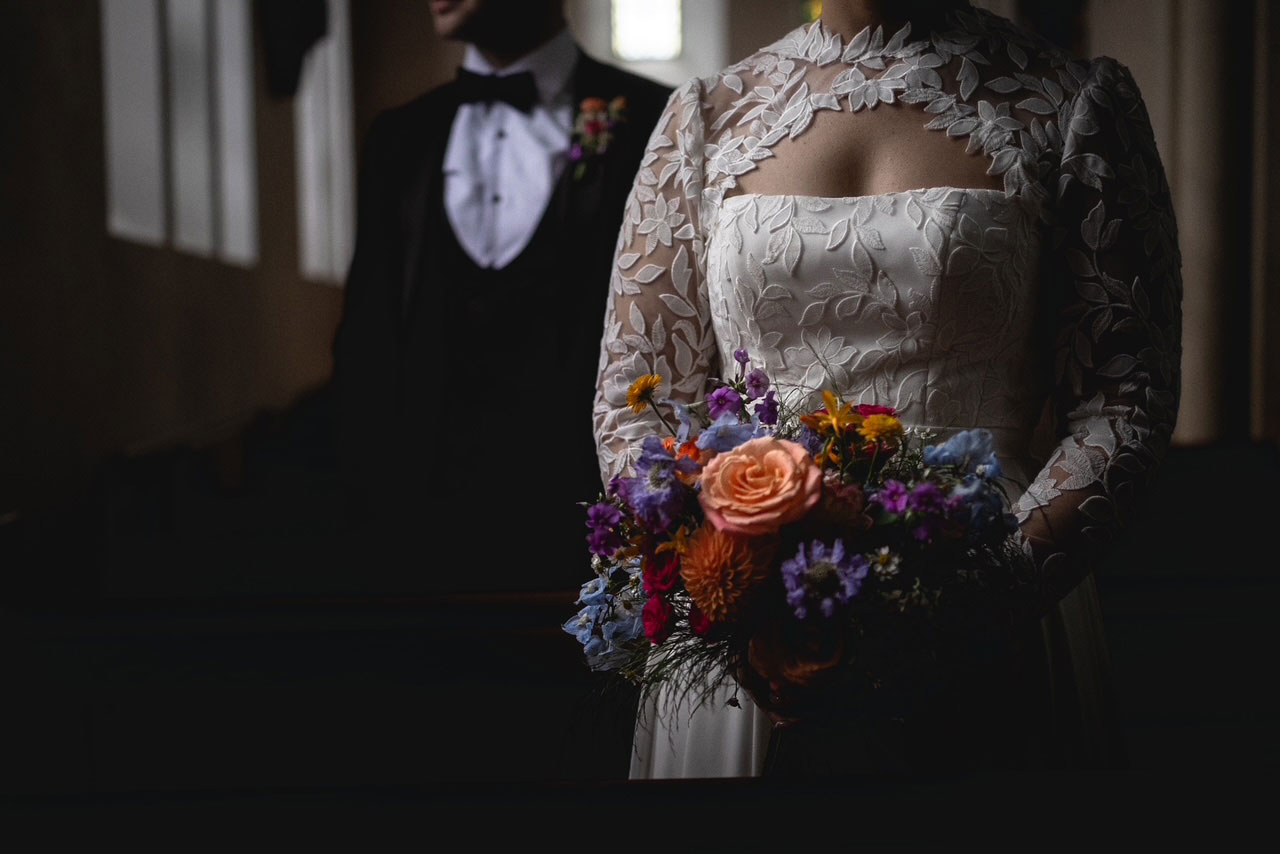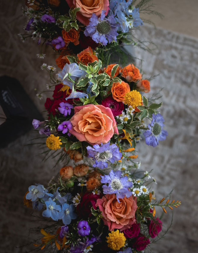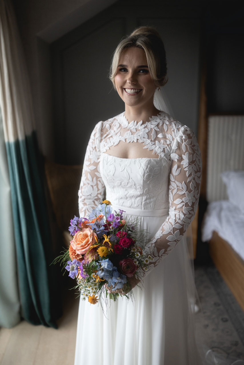 Set against the coastal beauty of Inchydoney, Brid and Patrick’s wedding featured florals inspired by the natural surroundings. Nicola designed flowing, textural bouquets for the bride and bridesmaids, incorporating soft tones and seasonal blooms. Ceremony arrangements enhanced the sense of romance, while the reception flowers added a refined yet relaxed elegance, creating a seamless connection between the landscape and the celebration.