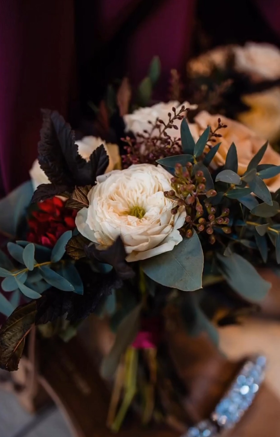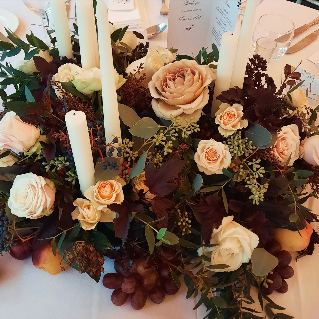 Followed by their reception in the Octagon Marquee on the grounds also. Lisa had decided on a petite style bouquet which I incorporated autumnal tones of burgundy, peach and cappuccino florals. This colour palette was used throughout all the flowers for this gorgeous autumnal wedding.